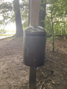 Near the information board by hole 1/18 you’ll find our Lost and Found, aka R2D2. Discs placed here will be handled by the club’s Lost and Found manager, meaning the owner will be contacted if a phone number is written on the disc, and if that doesn’t work, the owner will be sought through a post on the course’s Facebook page. If you haven’t written your name/number on the disc, you can also make a post yourself on the Facebook page “Søhøjlandets Disc Golf.”
